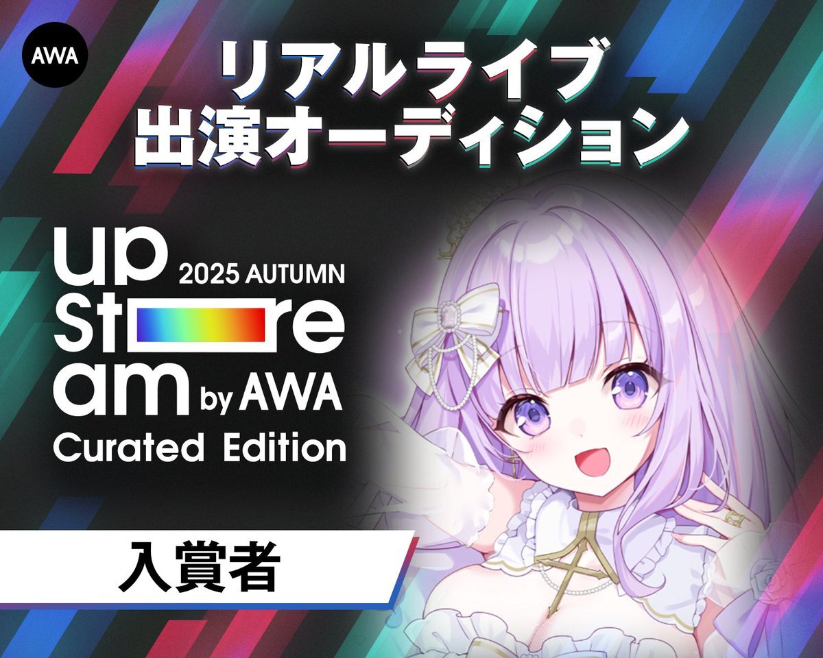 【⋆͛📢⋆嬉しいお知らせ👑💜】 皆さんの応援のおかげでオーディション合格しました…(´;ω;`)👑💜💜💜 AWA UPSTREAM 2025出演決定です🎤✨️ 本当に本当にありがとうございます…!!! 憧れの巫てんり様と同じステージに立てるなんて夢みたいで震えが止まりません…!!! pic.x.com/bOdf8vXafC x.com/awa_lounge/sta…