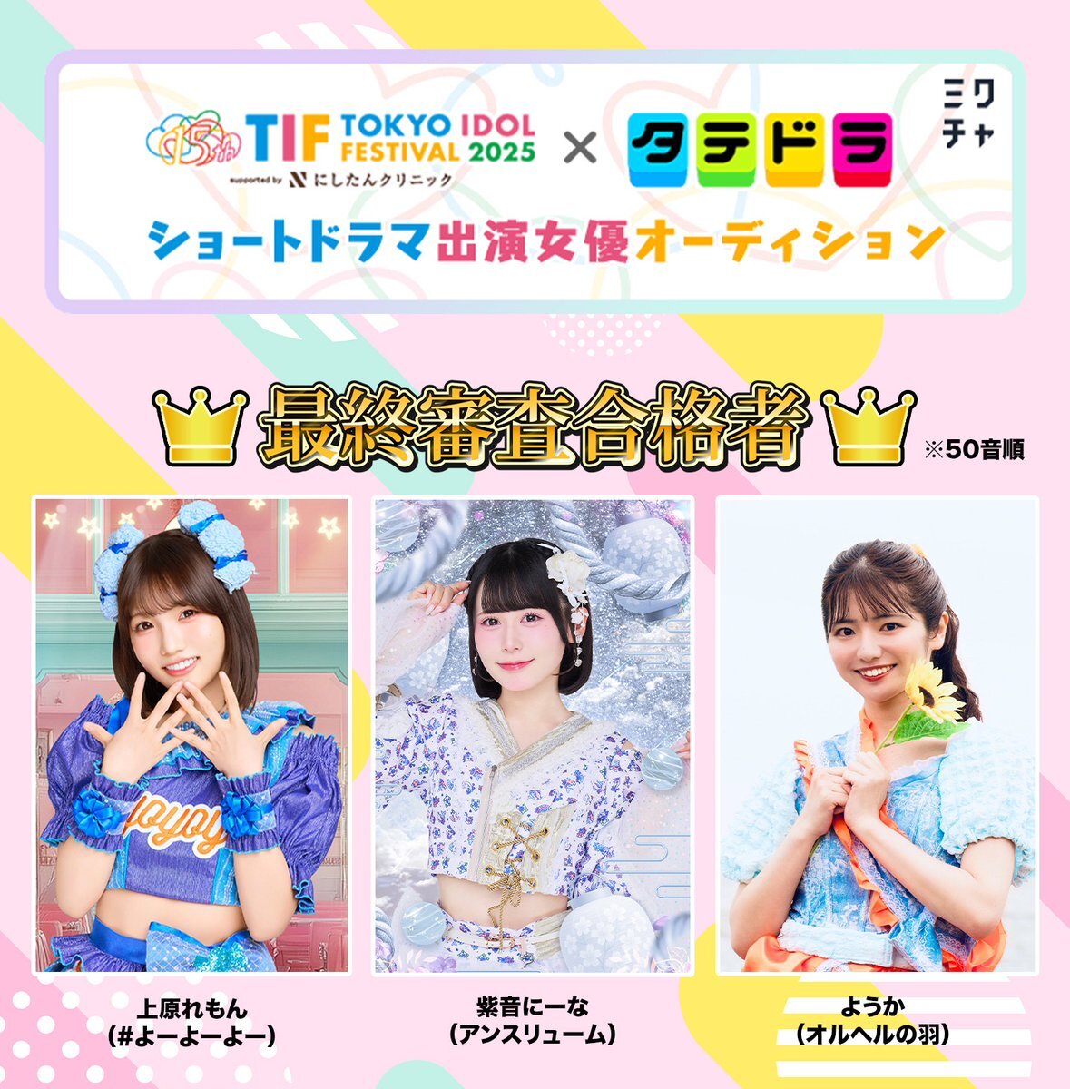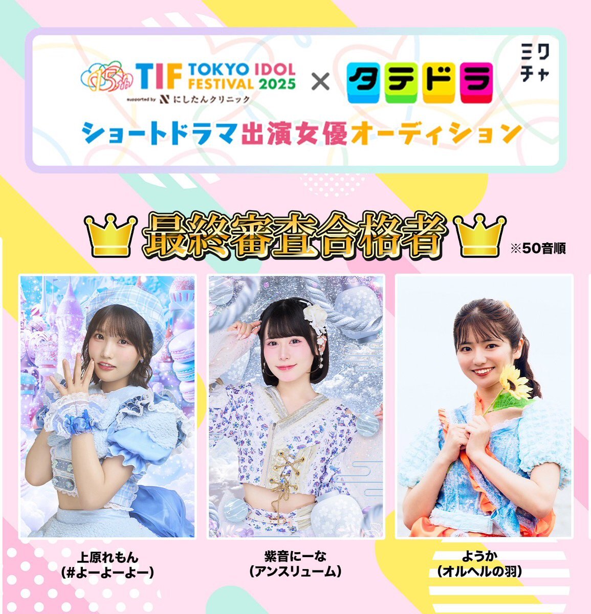 #TIF × タテドラ 主演オーディション最終審査合格 することができました‼️ 皆が応援してくれたお陰だよーっ🥹✨️ 大緊張しちゃって頭真っ白で帰り道めっちゃ悔しかったの覚えてる…( •︠ࠏ•︡ ) 楽しみにしててください☺️♡ x.com/tip_tif_staff/…